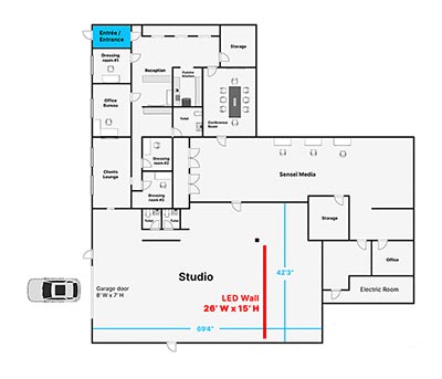 • Service électrique dans le studio : 18 prises de 20 ampères et 1 prise 40 ampères